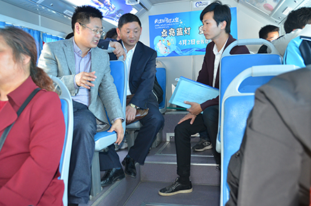 何宇健一行首先乘坐了游1路公交車開展現場調研。在公交車上,何宇健親自體驗了軟皮座椅的舒適度,了解了車廂內部的配置,聽取了乘客對游1路的評價。