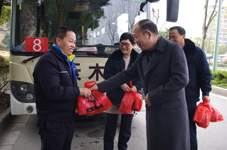 1月28日(農歷大年初一)上午,公交公司相關負責人來到火車站、高鐵嘉興南站、汽車客運中心、秀洲區行政中心樞紐站、秀州中學等公交樞紐站和首末站,向堅守在公交營運服務一線的干部職工致以節日的慰問和新春的祝福,并為他們送上慰問品,感謝他們春節期間為保障廣大市民出行堅守崗位、敬業奉獻。集團公司副總經理何宇健參加了此次慰問活動。