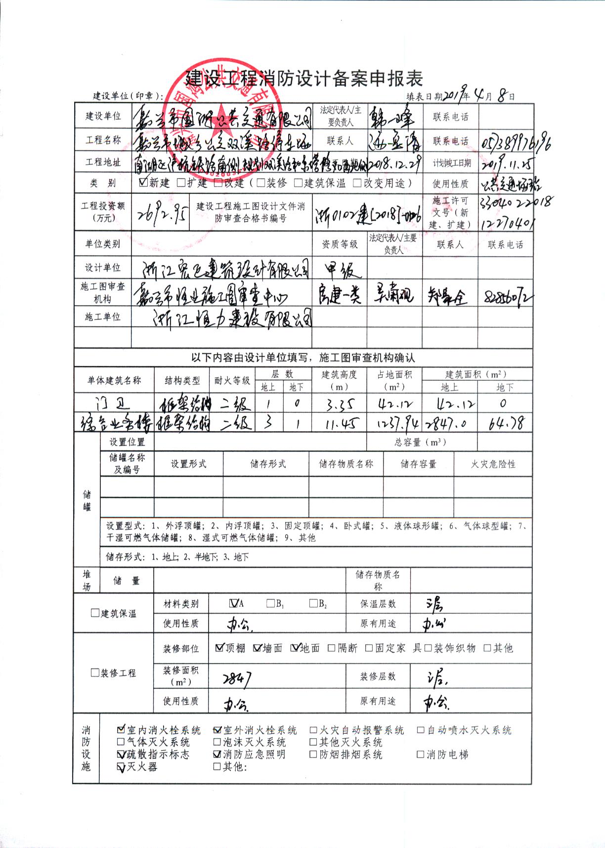 嘉興市城鄉(xiāng)公交雙溪路停車場(chǎng)項(xiàng)目消防設(shè)計(jì)備案申報(bào)表